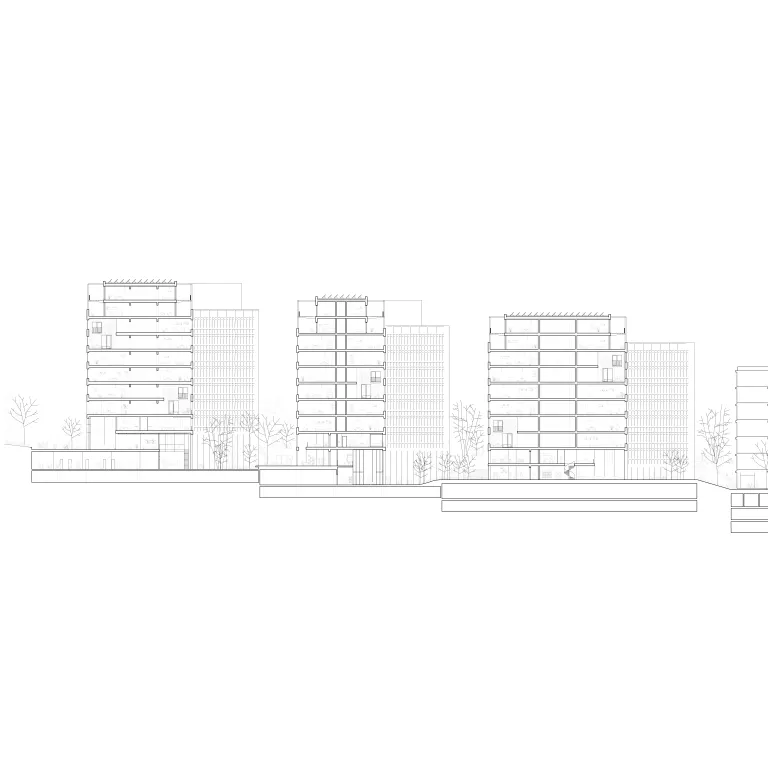 By integrating shared spaces, strengthening links to the surrounding park, and supporting the gradual transformation of the future boulevard, the project shapes a vibrant, inclusive neighbourhood.