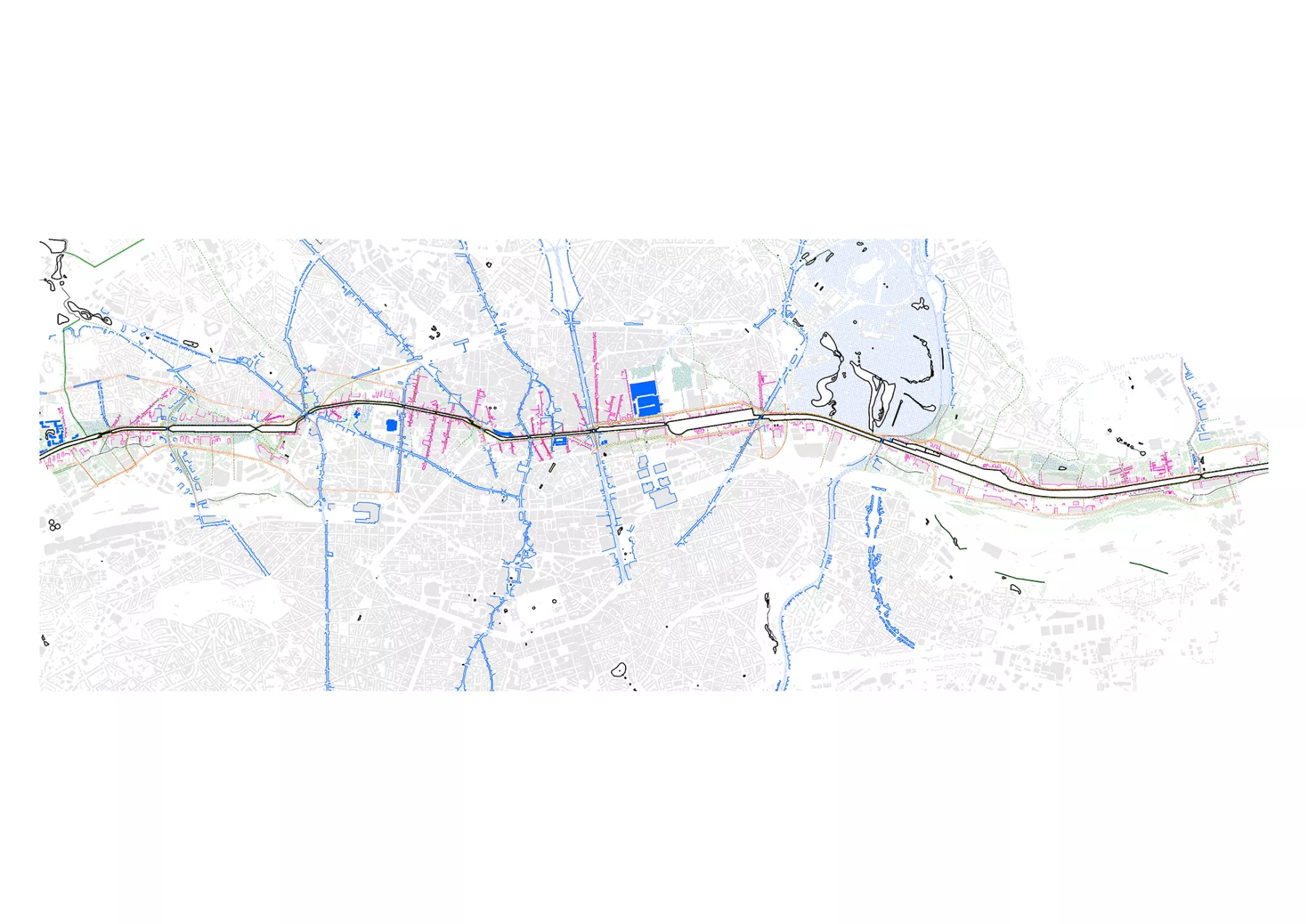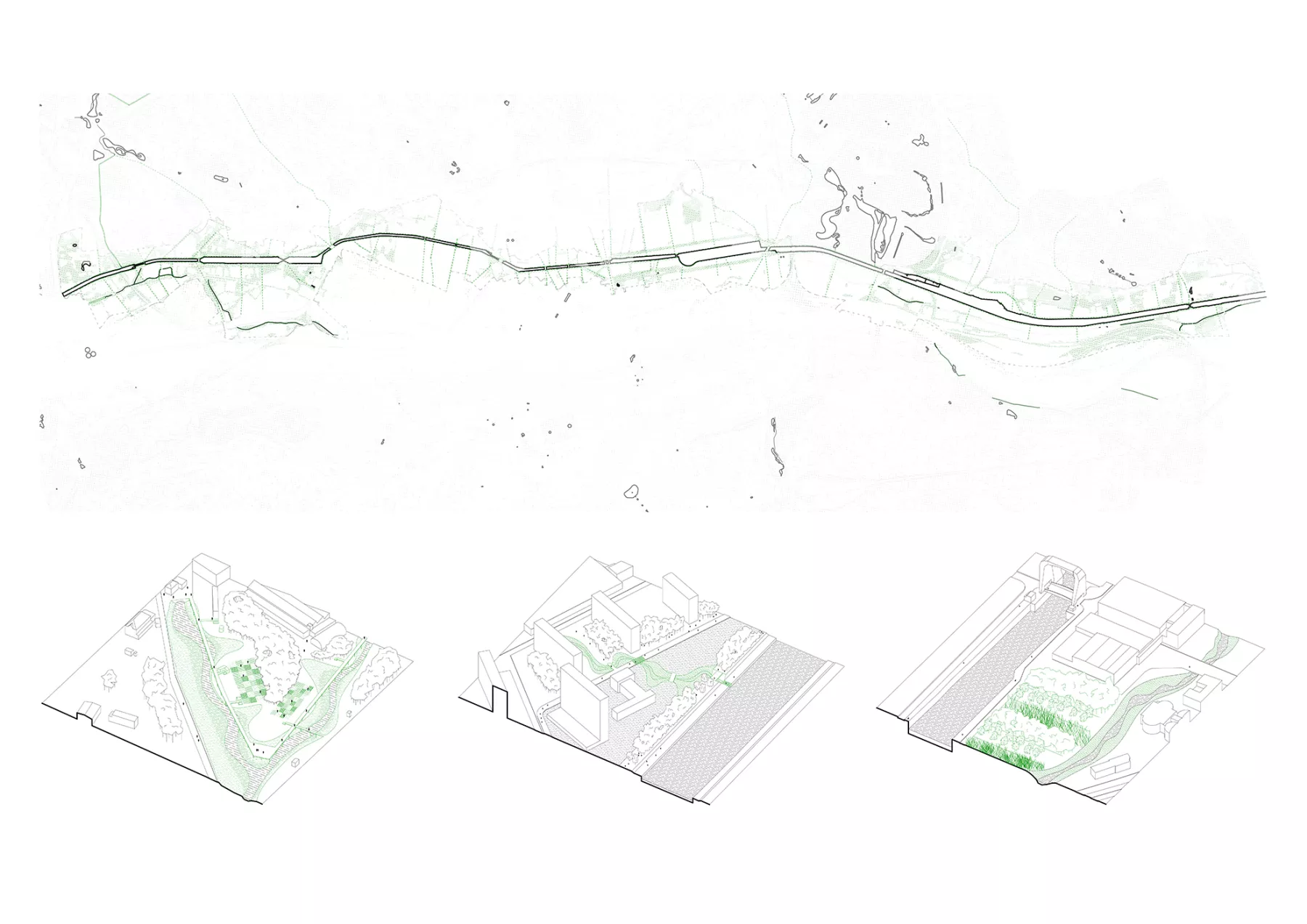 - Infrastructural Landscape - The project investigates the challenges related to the canal, railway, and roads, considering their roles as productive infrastructures. It proposes intervention principles to diversify their uses and enhance their functionality, ultimately promoting better integration with the surrounding urban environment.