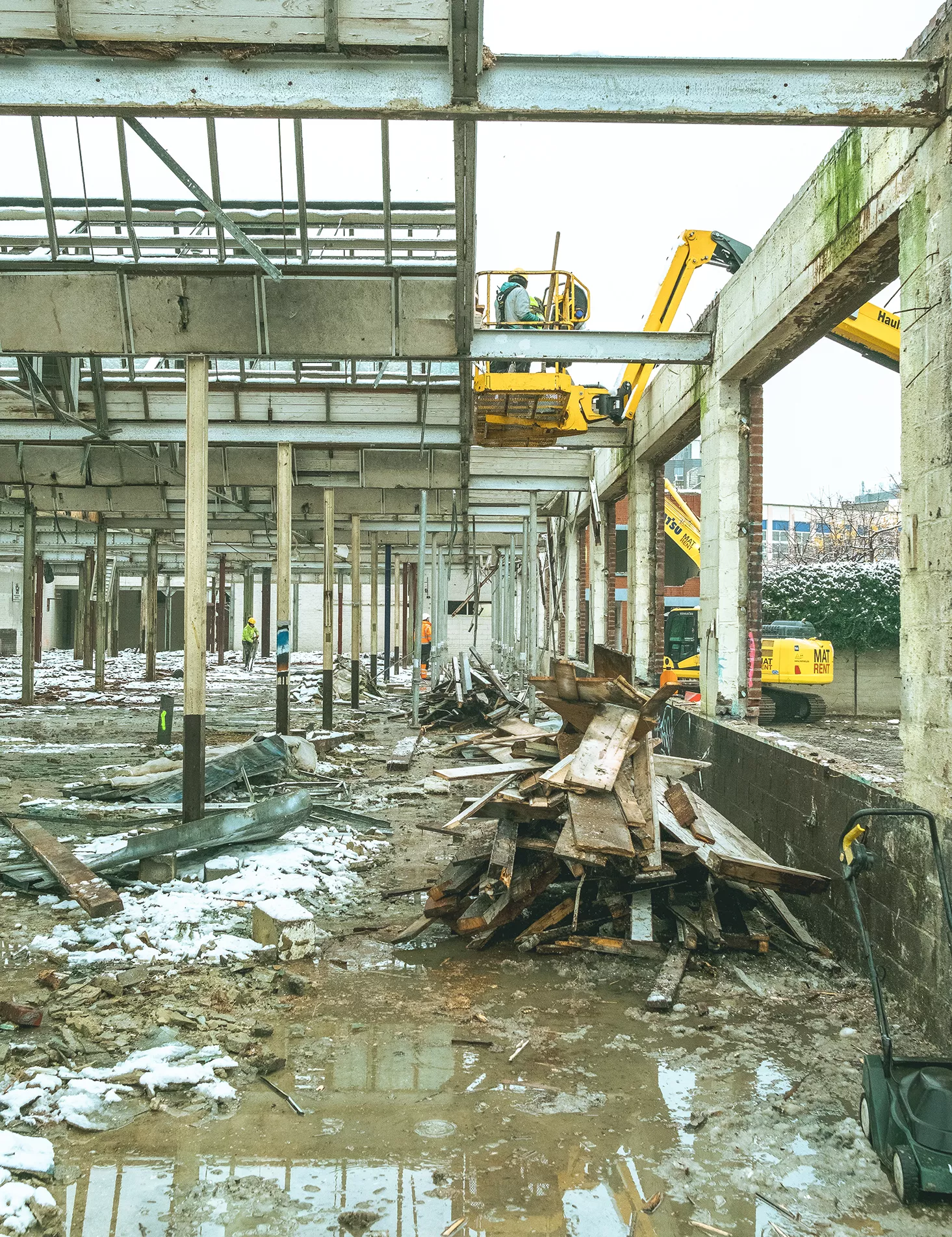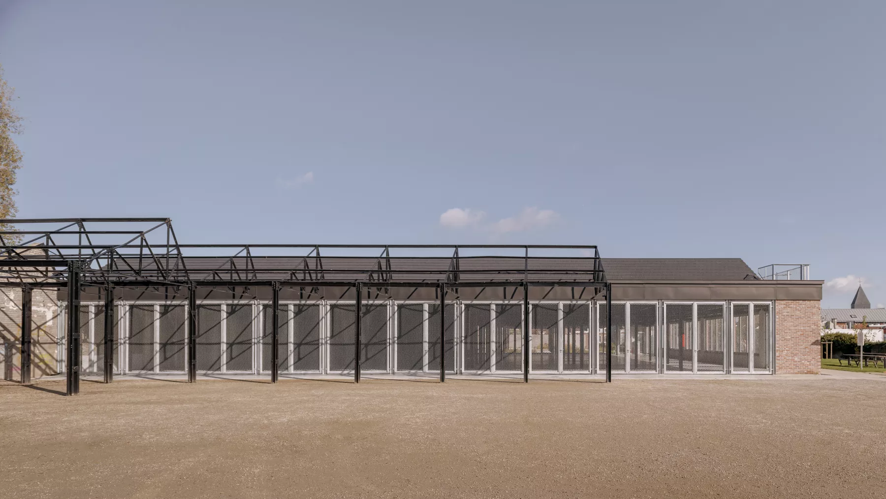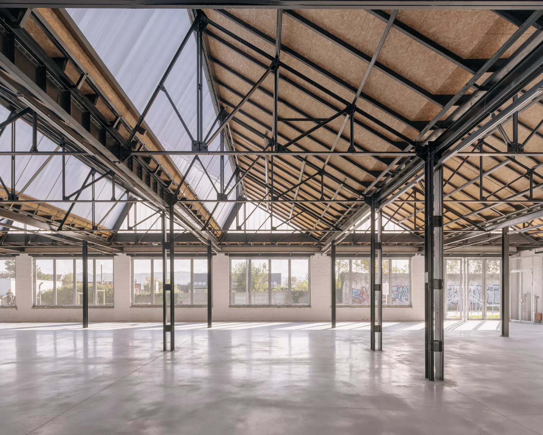 The project's overarching approach is to maximize the use of existing features and provide the highest quality to the spaces defined by the new development. The Browning factory building will be partially transformed into a covered hall connected to an intergenerational house. The main part of the building will be preserved to create a flexible, square-plan hall for diverse uses. It will facilitate hosting covered activities for the city and offer shelter during inclement weather conditions.