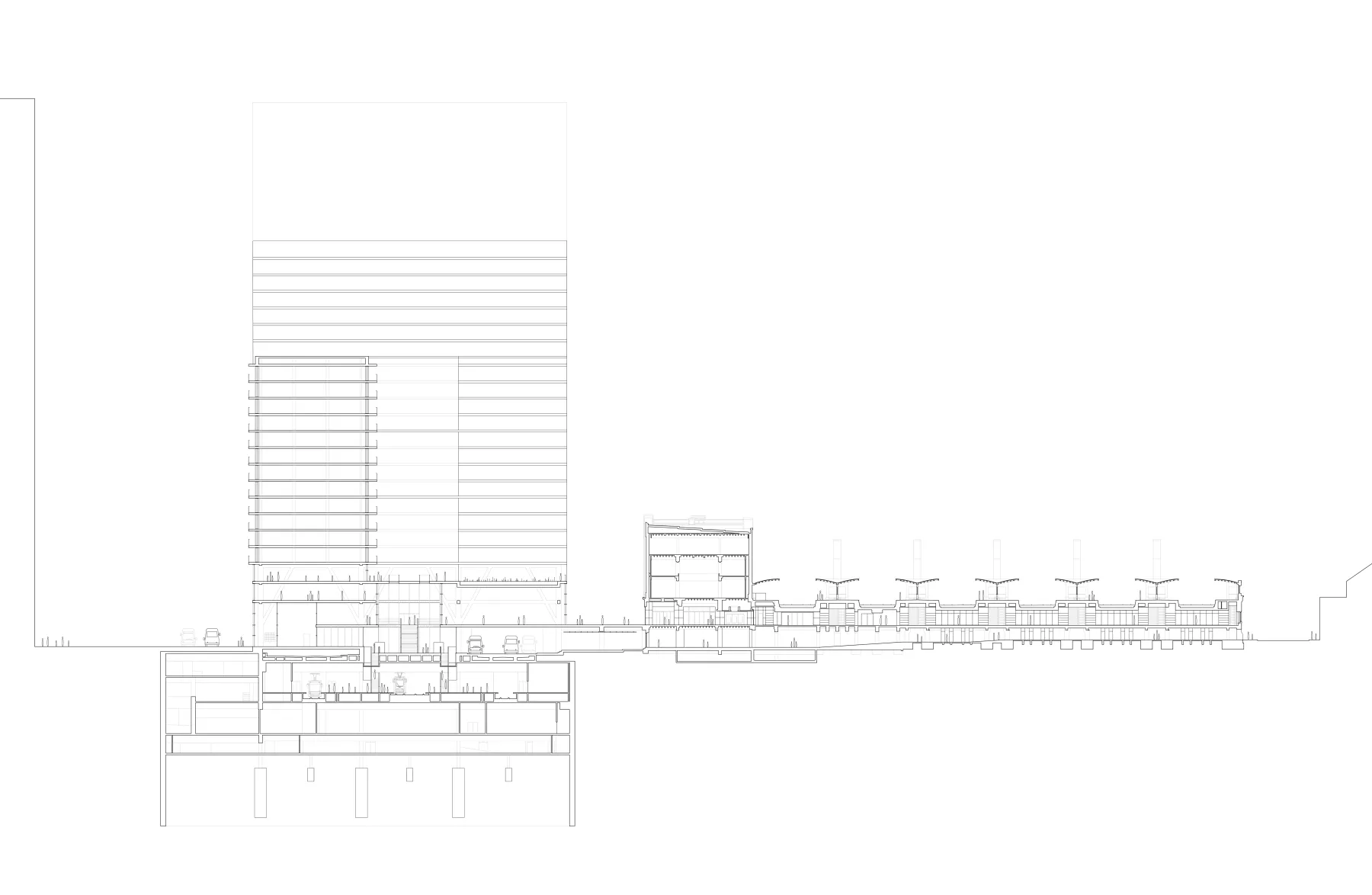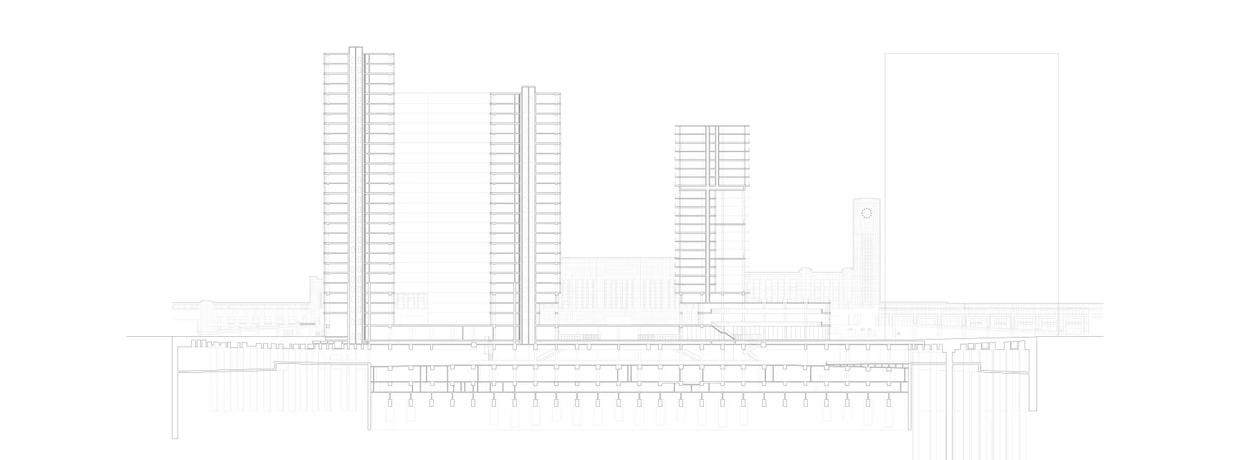 At the heart of the site, a new multimodal hub under a large canopy connects trains, trams, buses, metro, taxis, and active mobility. A redesigned southern square becomes the main gateway to the station and the neighbourhood, reinforcing the site’s role as a vibrant, accessible, and connected urban node.