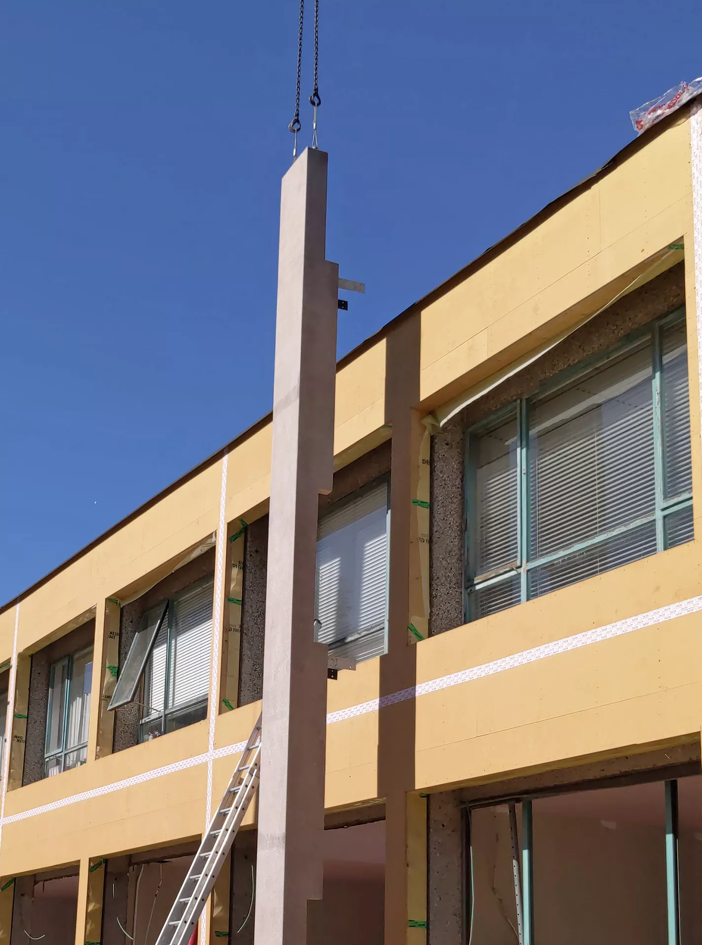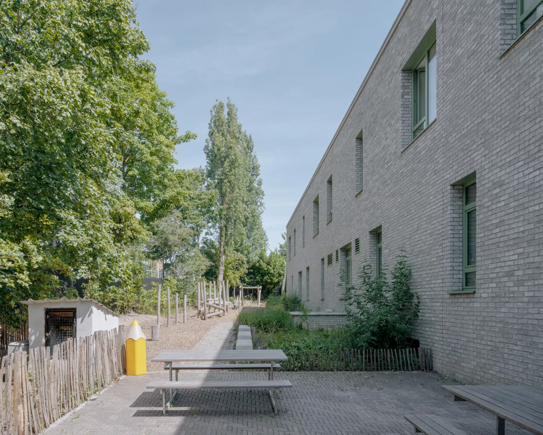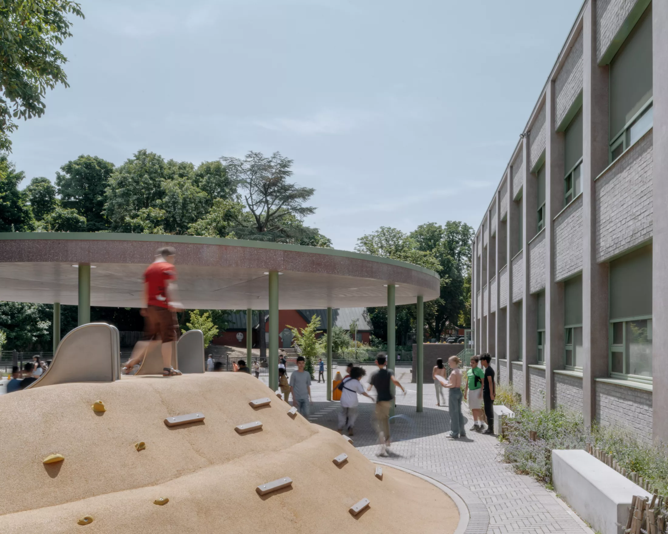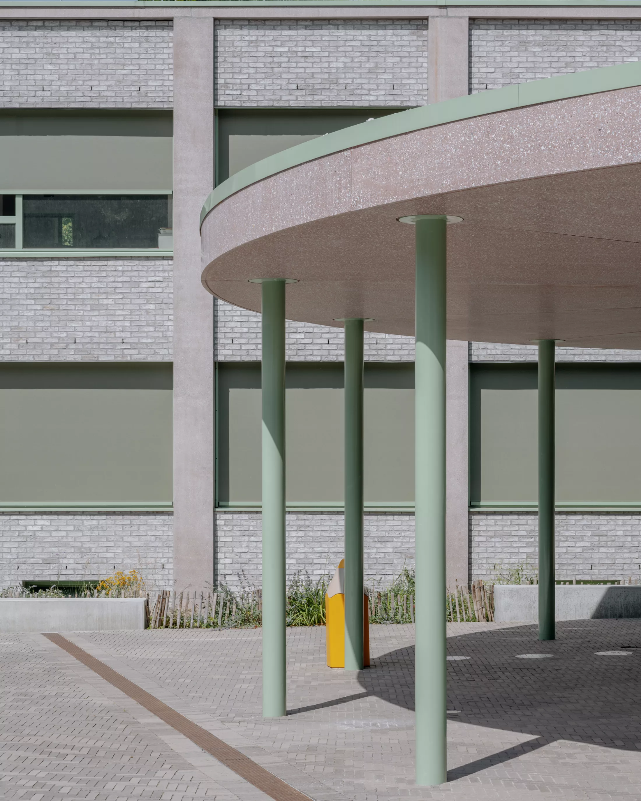 The renovation has been designed to maximize the recycling of the existing building in the renovation by limiting the demolition of the existing structure and working with a system of prefabricated insulated facade panels. This approach ensures both the sustainability and preservation of the building's original character while enhancing its energy efficiency and learning environment.