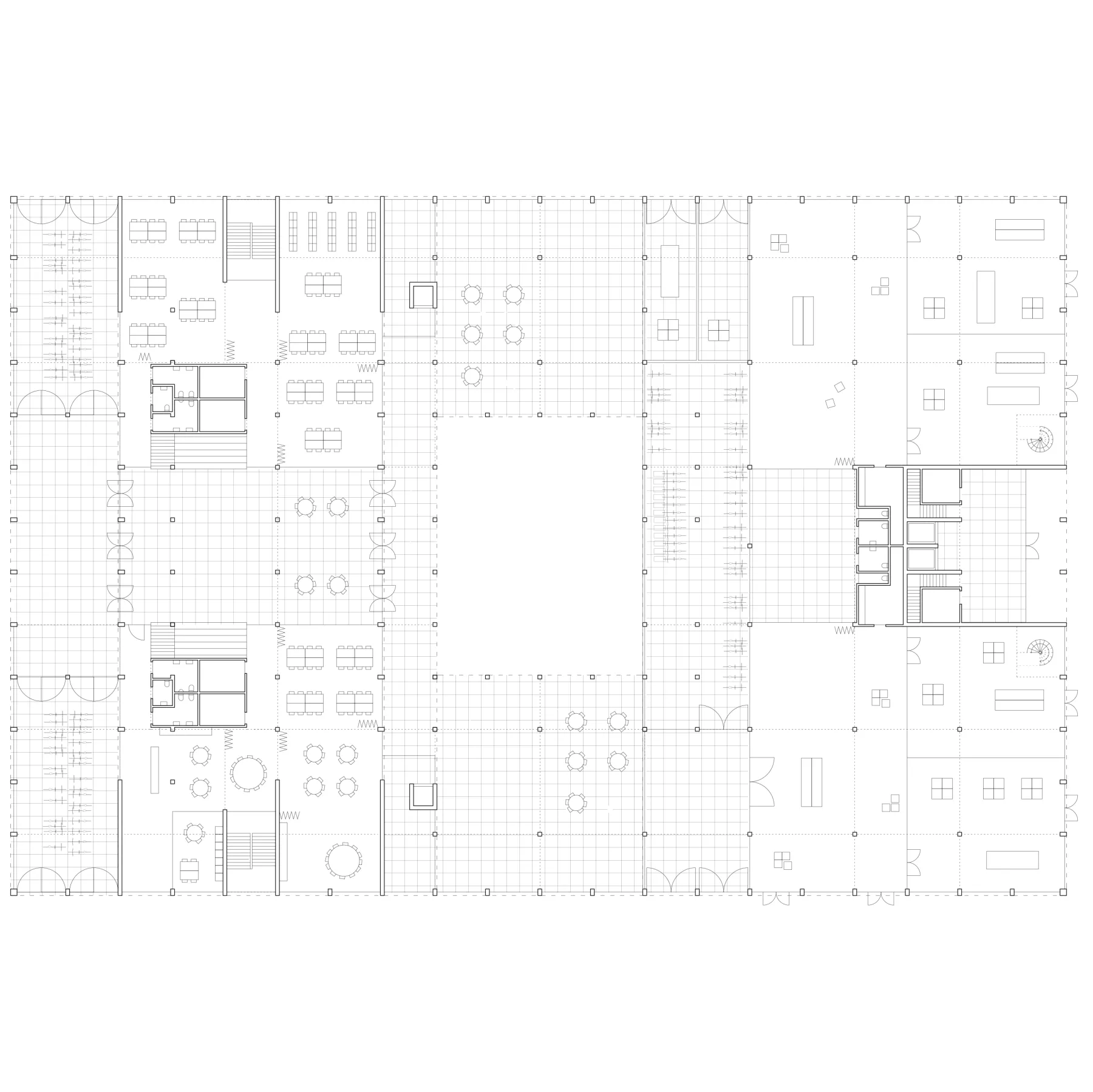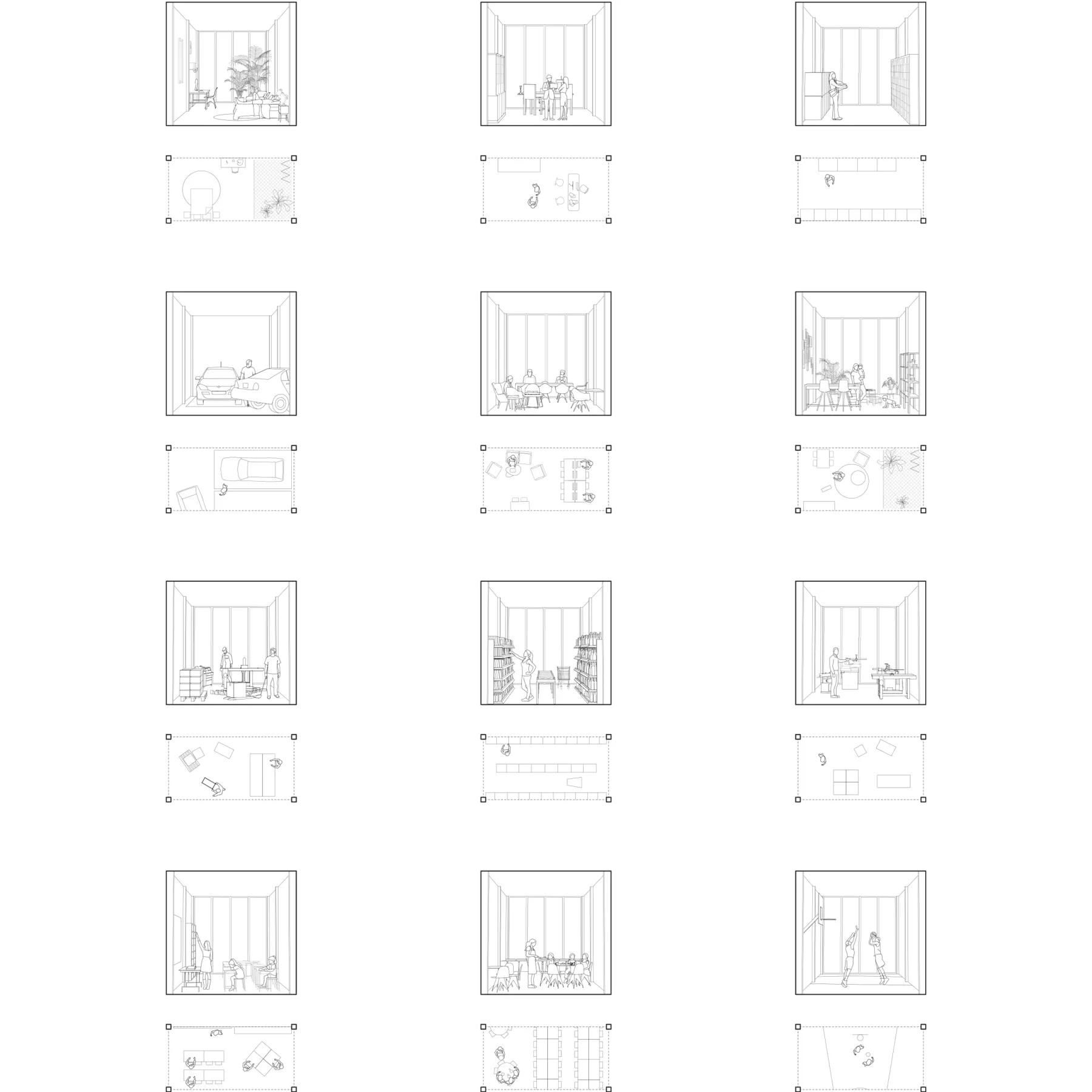 The housing infrastructure is materialized by a collection of successive equivalent rooms that provide flexibility for residents. The housing infrastructure enables users to adapt their space to their personal lifestyles and changing daily needs. In addition, the room composition enhances the quality of the housing through diagonal proportions, encompassing the landscape as an additional visual room.