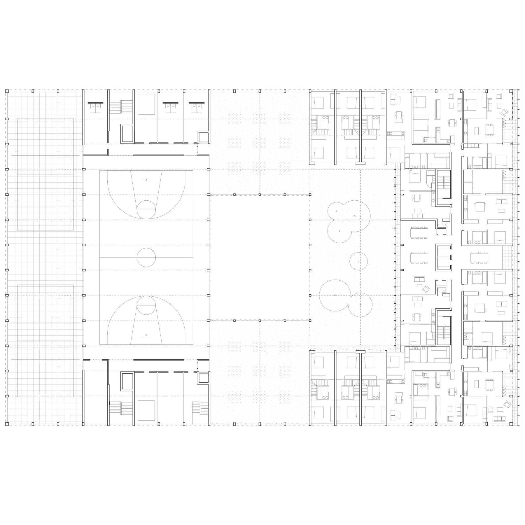 City dox’s design results from a meeting between a high school and a mixed residential program. Multifunctionality and flexibility are key concepts in the spatial translation of a contemporary school building. These crucial themes are at the heart of today's residential issues. Therefore, the response to both needs is based on the same logic and structure.
