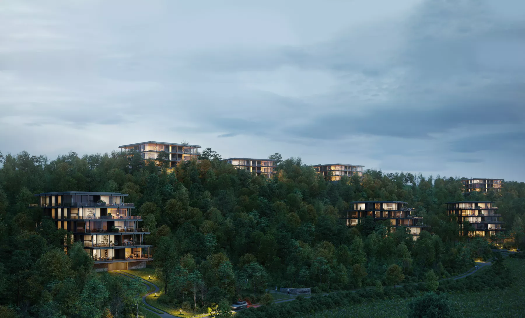 Located between the picturesque streets in a valley in Durbuy, this ambitious project spans over 19 hectares and embodies a harmonious integration of architecture and nature. The development includes the construction of 204 sustainable wooden and stone housing and an expansive agricultural park designed to enhance biodiversity and promote local food production.