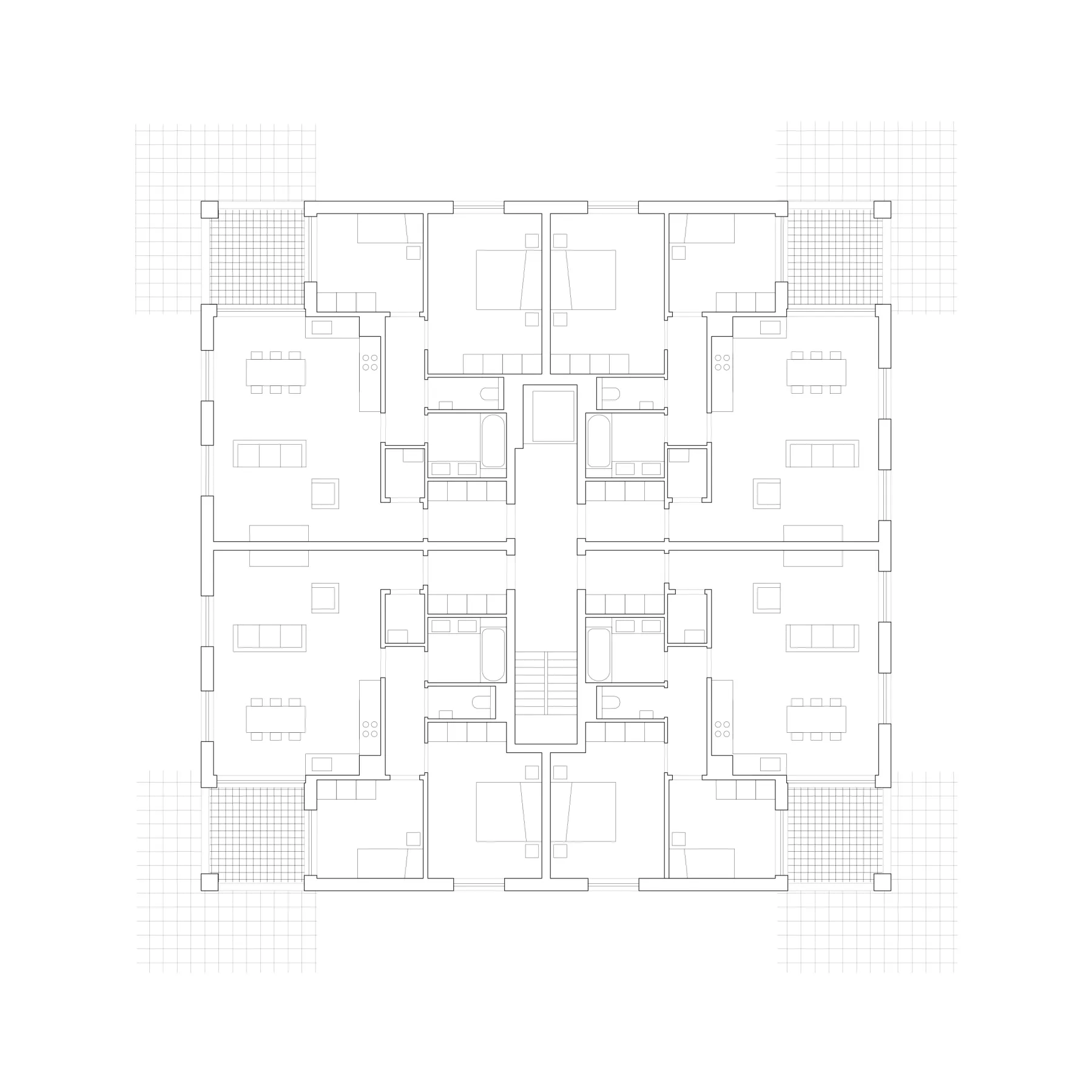 The project proposal emphasizes the significance of the relationship between the built environment and the surrounding gardens. The existing landscape serves as a central element for both the site and the houses. The project offers various ways of living within distinct garden spaces, including the vegetable garden, the central meeting garden, and the butterfly garden.