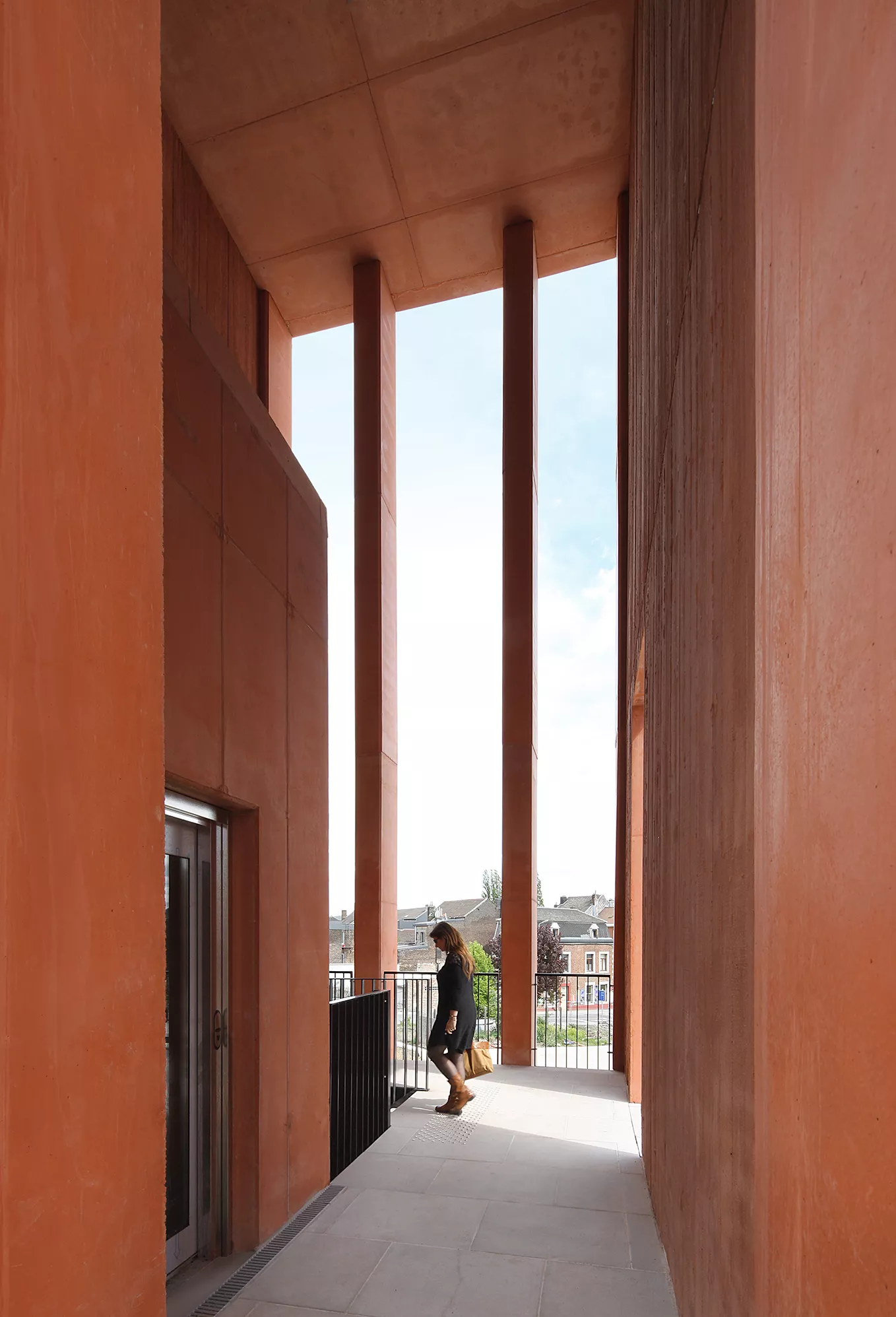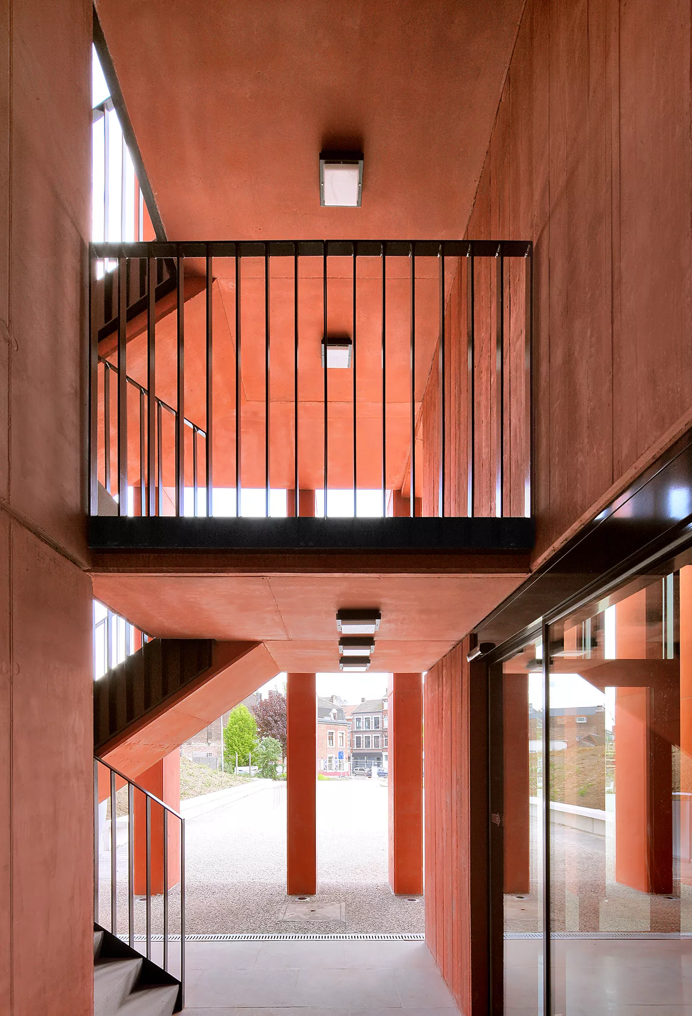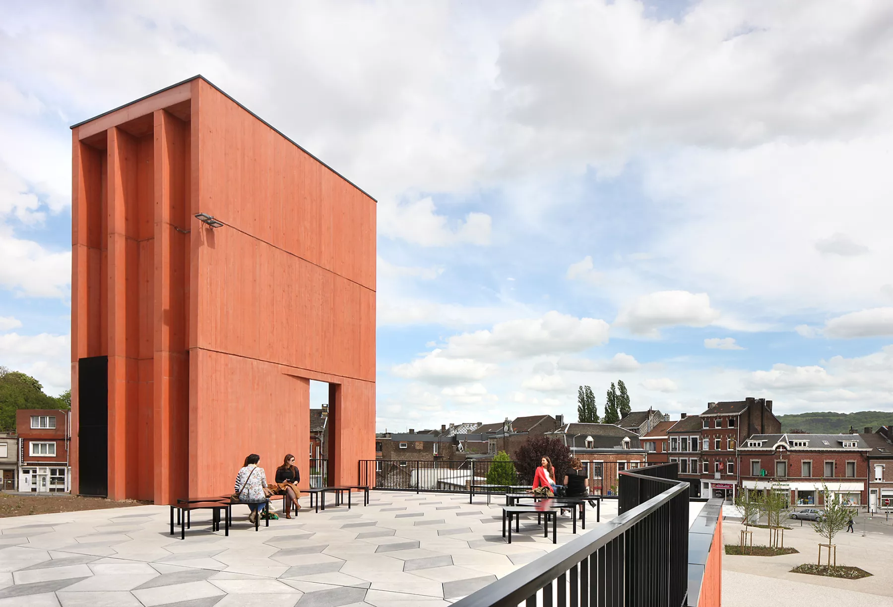 Above all, it was necessary to make this mission an exemplary urban project, both from the point of view of its integration into a particular existing context and from the point of view of the major principles of mobility and the logic of movement in the city. Characterized by narrow streets and a lack of public spaces, the lower town of Herstal required a thorough requalification of the existing facilities: one-way streets, widening of sidewalks, reduction of on-street parking spaces and creation of new parking lots, and the creation of a plateau at the intersection in the extension of the new square. Particular attention was given to universal accessibility, the continuous implementation and gentle slope ramps allow for comfortable accessibility for disabled people and all active users, pedestrians and cyclists.