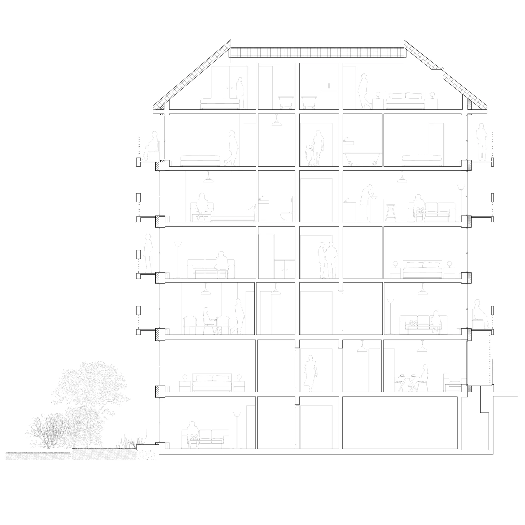 The reflection around this project was carried by a thorough historical reading, allowing to apply an approach respectful of the architectural identity of the various buildings. The work is oriented in the respect of the existing alignments, templates, modenatures, aspects and materialities. Thus, the project participates in the improvement of the architectural identity in an inclusive, environmental and sustainable approach.