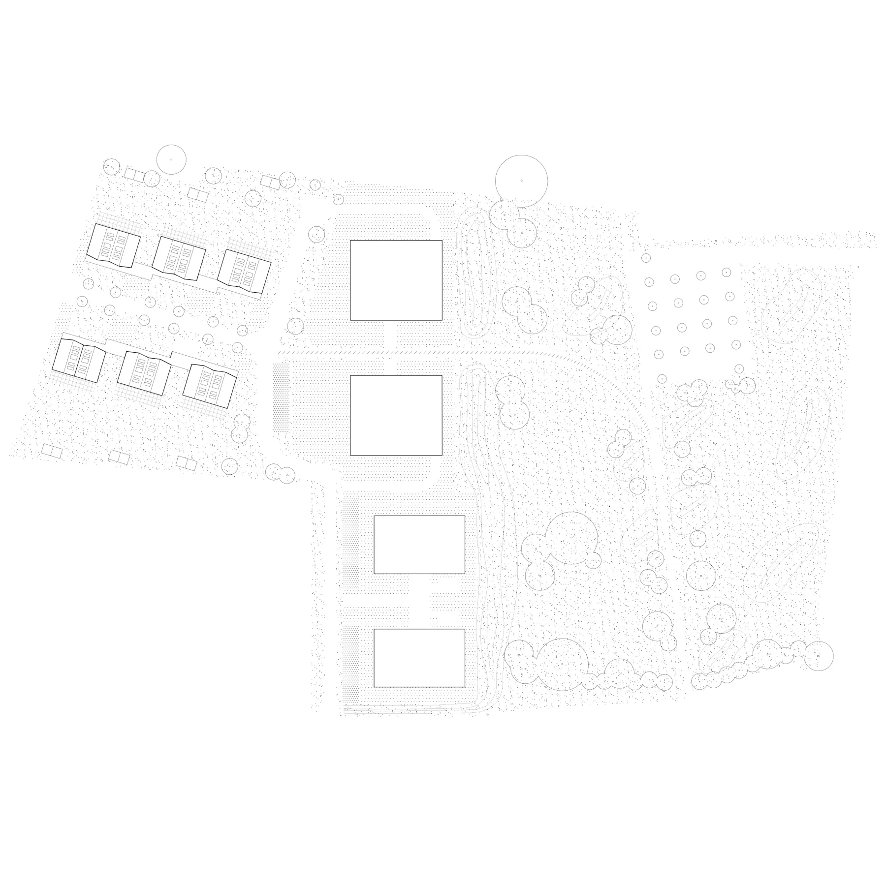 In parallel, 12 single-family houses are situated on the site, adjacent to a public park. The latter, reminiscent of raw countryside, consists of mounds of earth wildly planted. The project thus provides a stunning view of a lively and authentic green space.