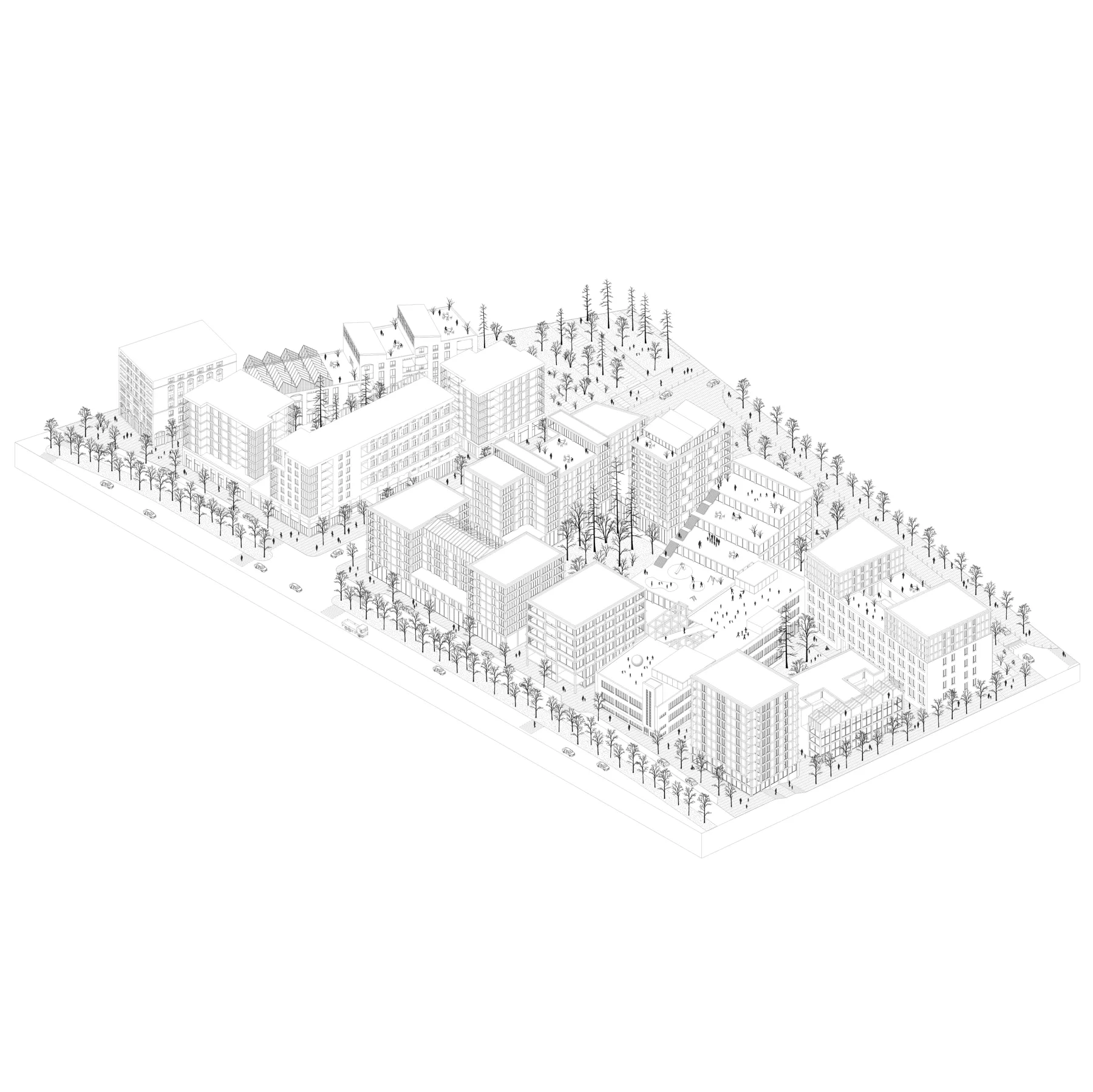 The project is confronted with different contexts: boulevards, streets, parks, railways, etc. Different morphologies (point buildings, blocks, bars) provide adapted responses and architectural homogeneity to this diversified context. Each building presents a programmatic, morphological and typological diversity. The housing typologies are marked by innovative arrangements that allow the evolution of housing over time, cohabitation with small workshops, and multiple organizations that encourage close relationships without forcing them. An atlas of the living environment shows these different typologies.