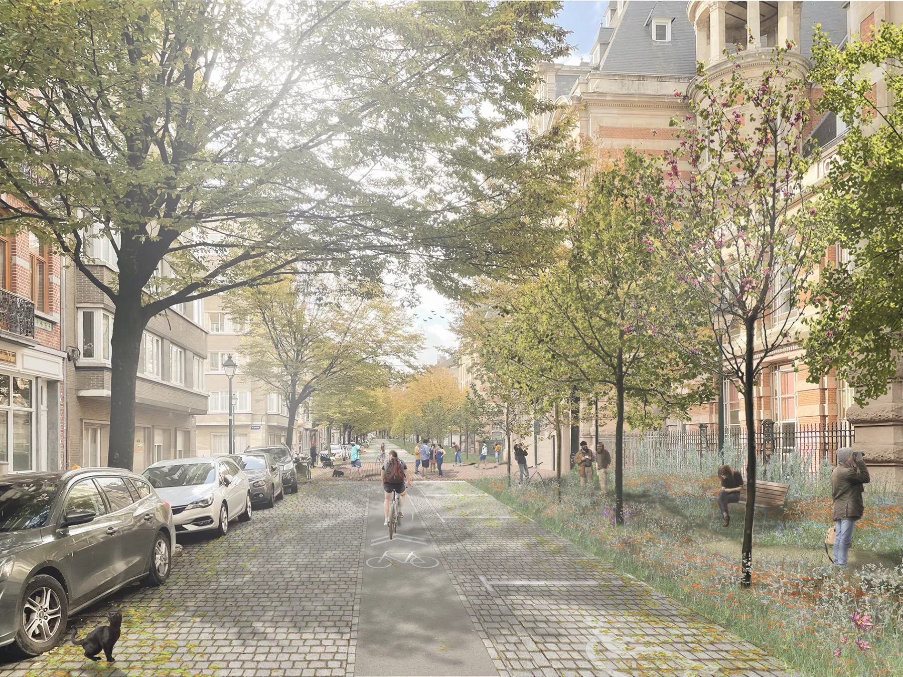 The Avenue transforms into a welcoming promenade, passing through garden patches. This new development emphasizes the municipality's green character and connects different landscape corridors.